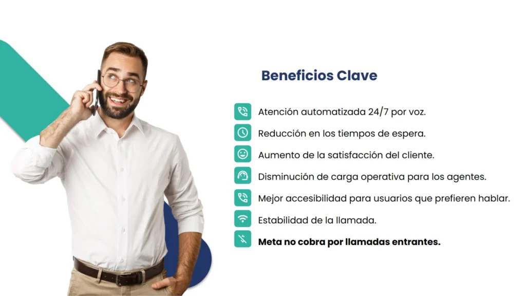 Este canal, además de estar oficialmente habilitado por Meta, permite una experiencia completa con voz automatizada, integración con datos en tiempo real y la posibilidad de escalar la atención hacia un Agente AI o un agente humano según la necesidad del usuario.